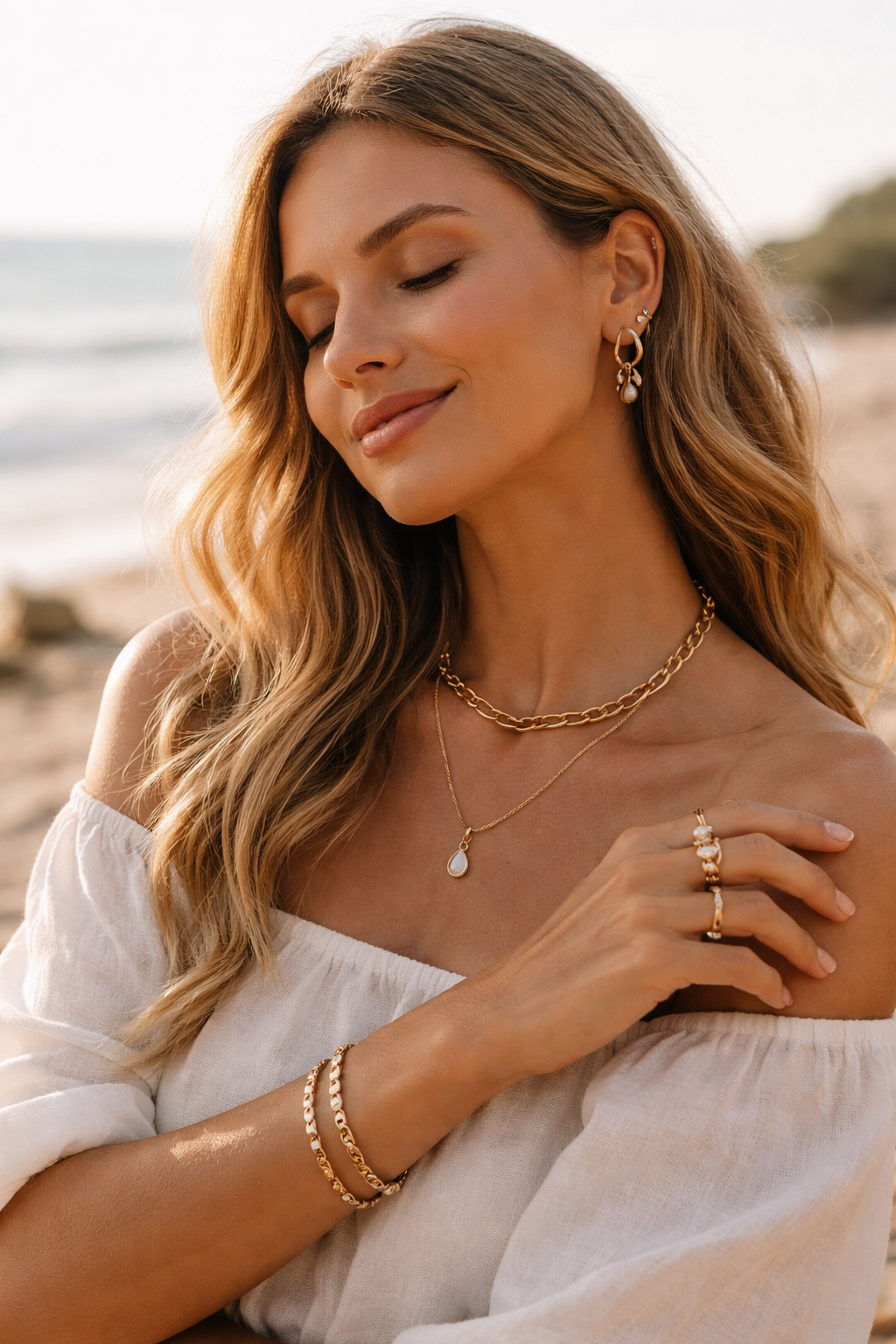Seleccionamos nuestras colecciones pensando en mujeres que quieren sentirse especiales cada día: joyas cómodas, duraderas y llenas de carácter, que acompañan tu estilo y refuerzan tu confianza.